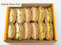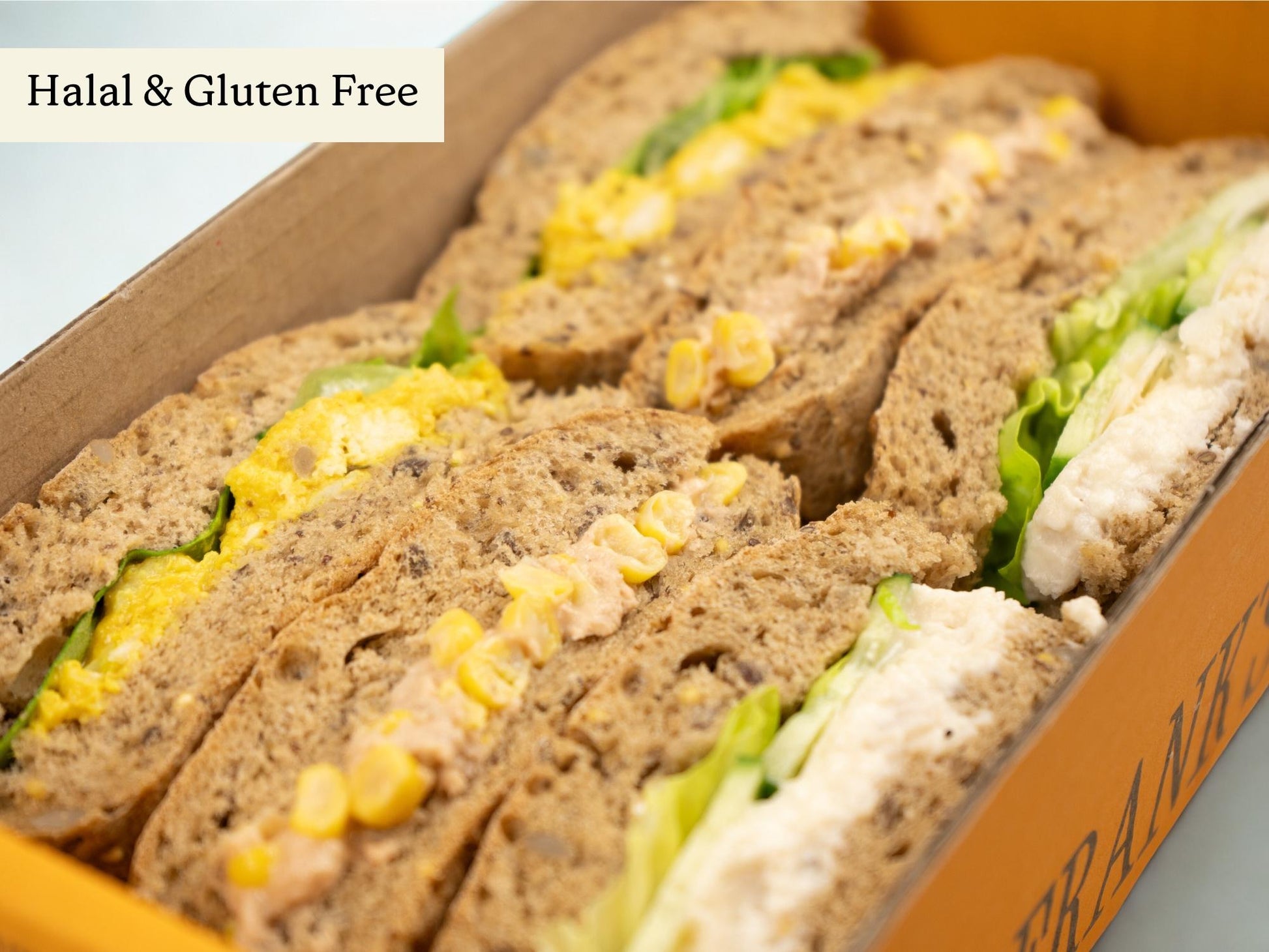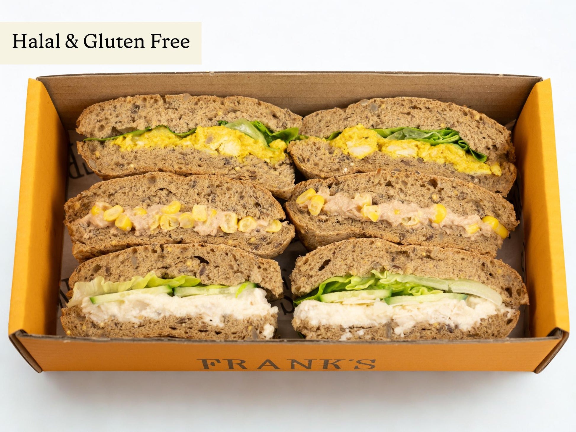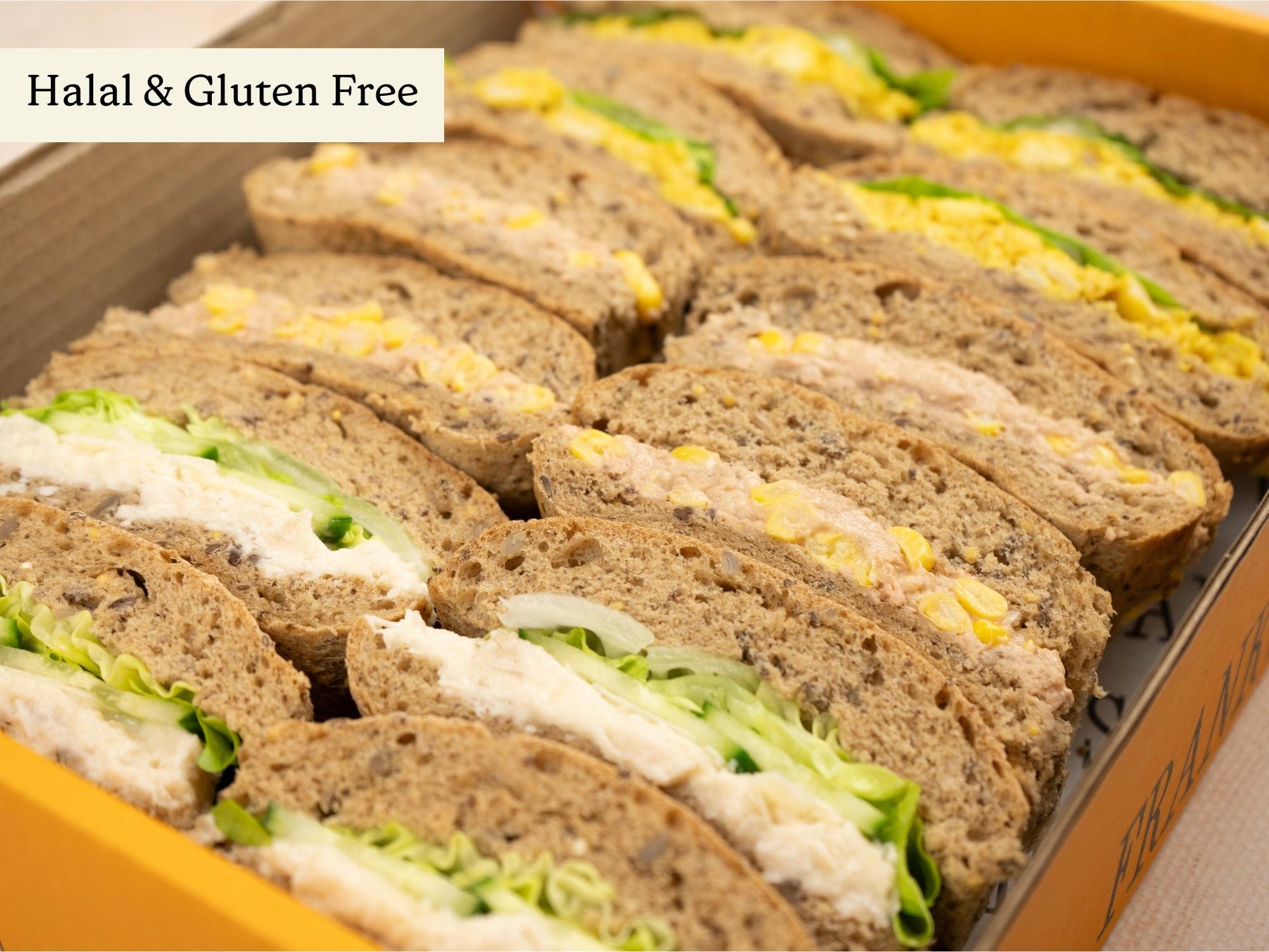 Each platter box is clearly labelled on the base with dietary and allergen information, so even when the lid is removed, the key details stay visible for safe and easy sharing.