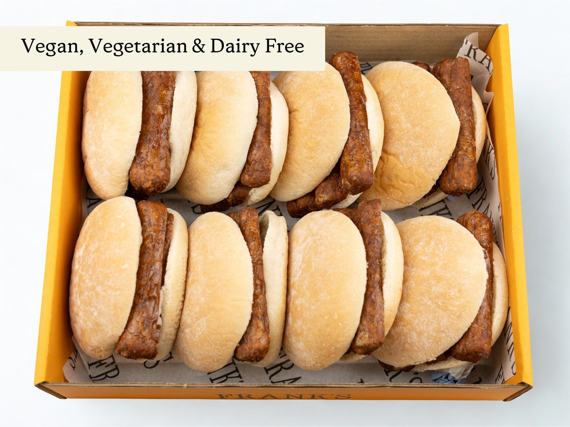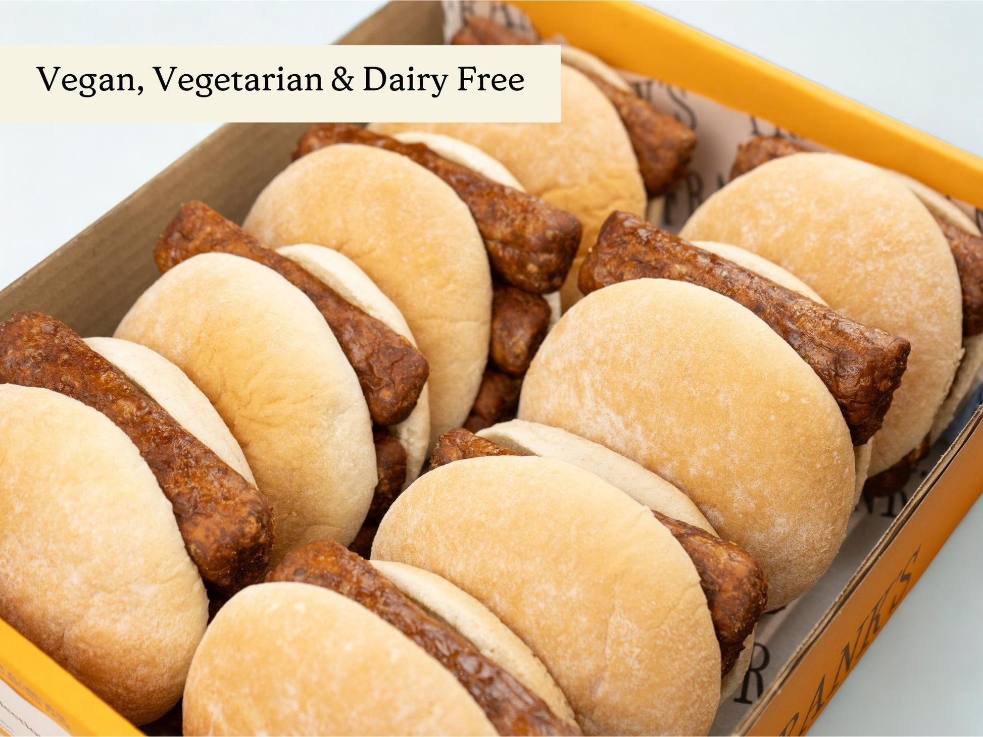 Freshly baked hot breakfast baps filled with vegan sausages